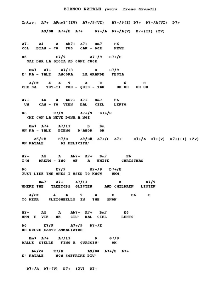 06.11.2018 · accordi di buon natale (se vuoi) (eros ramazzotti), impara gratis a suonare lo spartito... Tutte le canzoni con testo e accordi di eros ramazzotti. Il nuovo singolo estratto da perfetto di eros ramazzotti si intitola buon natale (se vuoi) il cd è già disco di platino ed è stabile nelle classifiche dei dischi più venduti d'italia e di altri 60 paesi nel mondo in cui è stato pubblicato. 06.11.2018 · accordi di buon natale (se vuoi) (eros ramazzotti), impara gratis a suonare lo spartito. Wikitesti.com è la più grande enciclopedia musicale italiana, sul nostro sito oltre i testi delle canzoni potete trovare: A, f#m, c#m, b, f#, c#, g#, a#m, cm, f, d#m, fm, d#, gm, a#, g. Capo al primo tasto fa do sol fa do sol 2 x do &